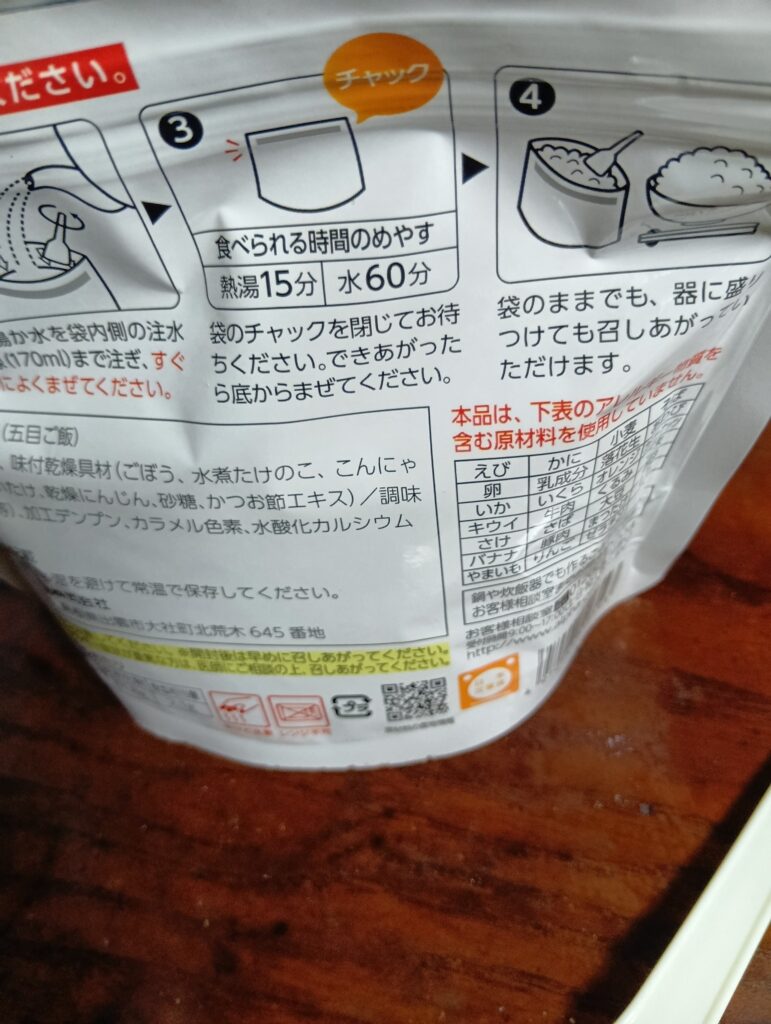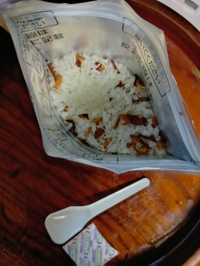 スプーンも入っています。驚いたことに水でも調理可能(1時間置いたら)らしい。